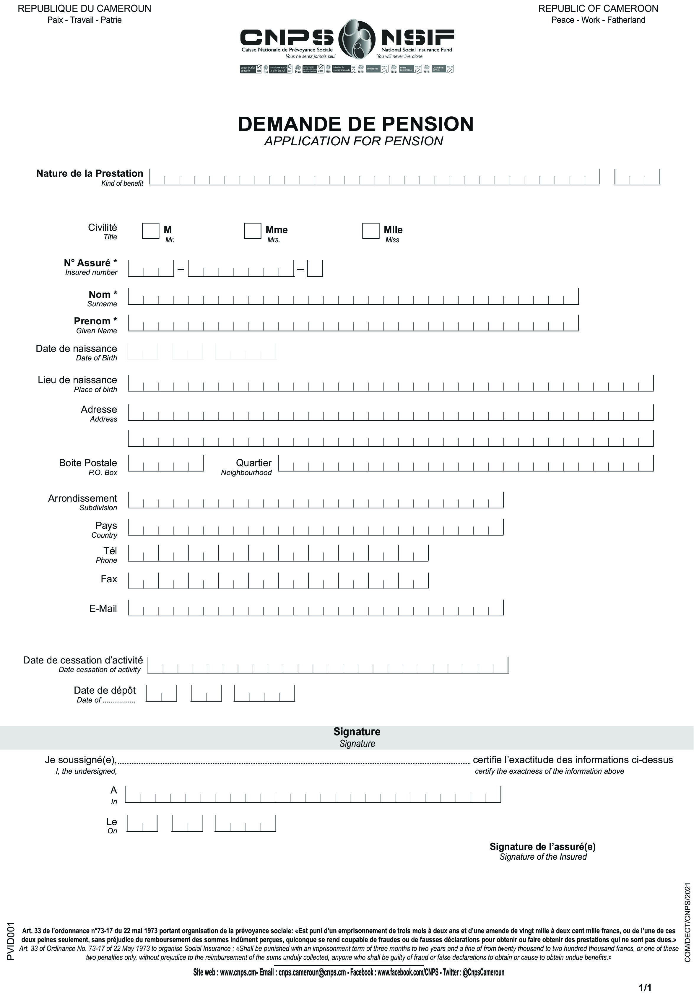 Réponse : Vous pouvez trouver des imprimés pour les demandes de prestations, les déclarations de cotisations, les demandes de pension, et les formulaires d'inscription pour les travailleurs indépendants.